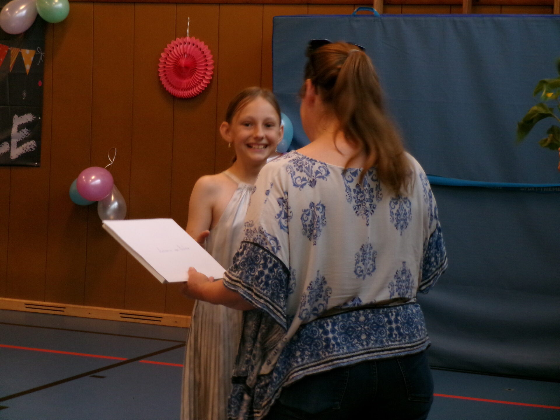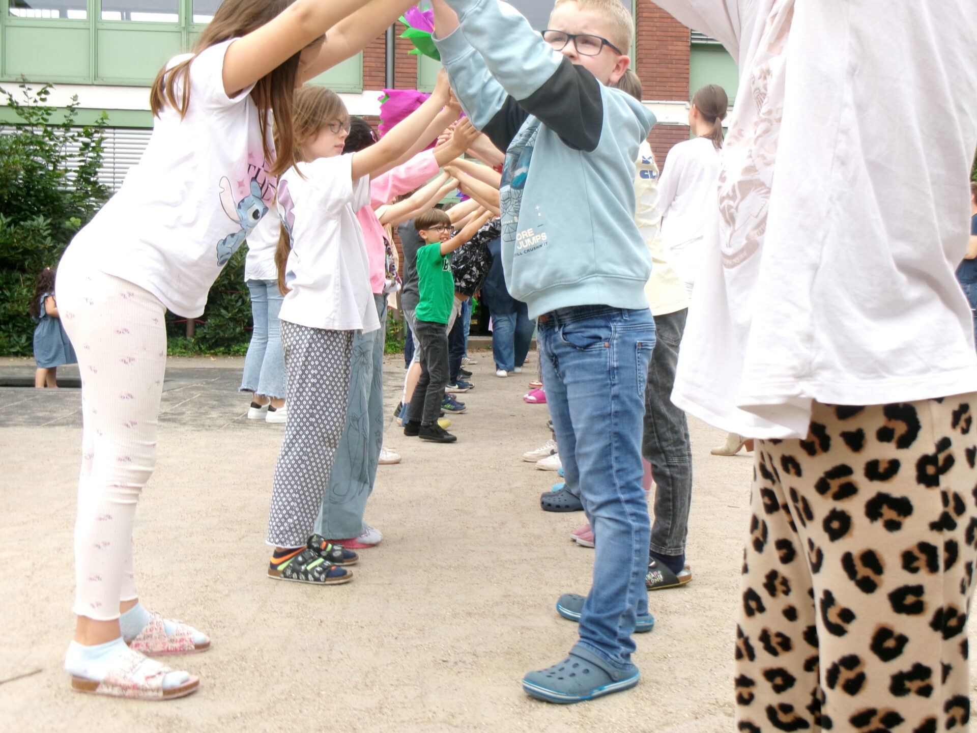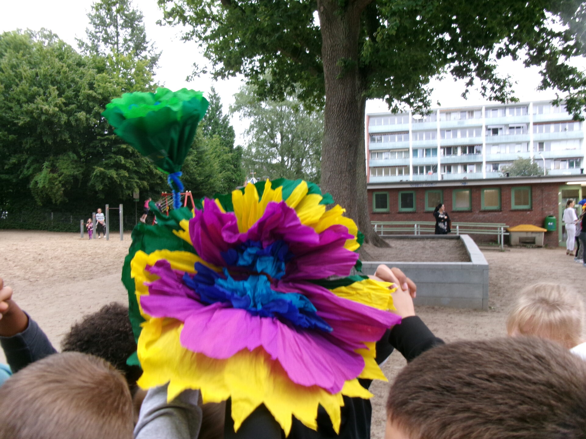 Heute haben wir die Schülerinnen und Schüler aus den vierten Klassen verabschiedet. Sie gingen durch ein Spalier aus Kindern und selbst gebastelten Blumen in die Turnhalle. Dort warteten die Eltern und Klassenlehrkräfte auf sie. Es gab emotionale Momente, Abschiedsreden und für jedes Kind eine Sonnenblume – die Zeugnisse natürlich nicht zu vergessen.